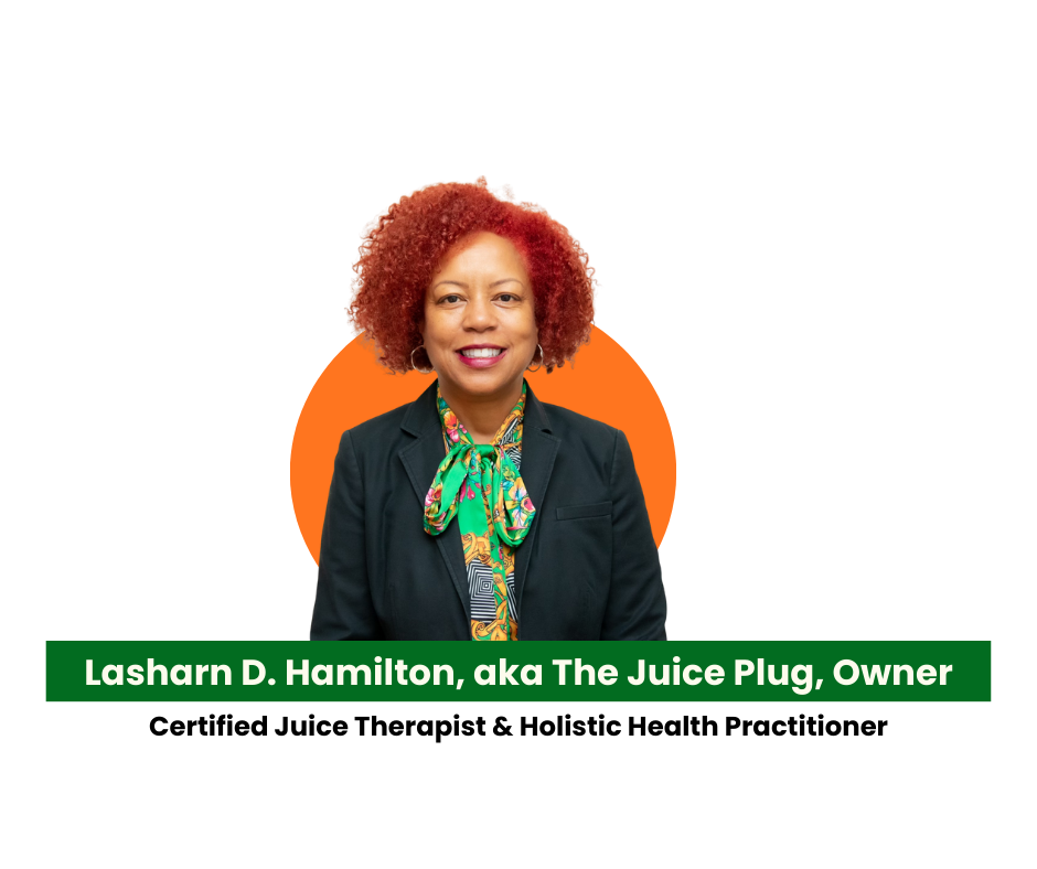 Founded by Lasharn D. Hamilton, aka The Juice Plug, our brand was born out of a personal journey of healing and transformation. Lasharn is a Certified Juice Therapist and Holistic Health Practitioner. What started as a private quest for better energy and healthier habits became a passion for sharing fresh, natural fuel with the people around us. The more we pressed, blended, and created, the more it became clear:
